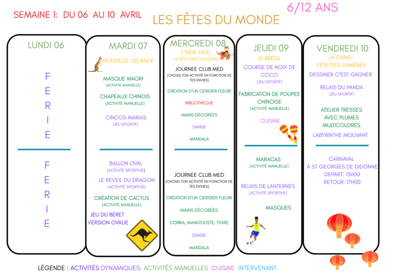 PLANNING DES VACANCES