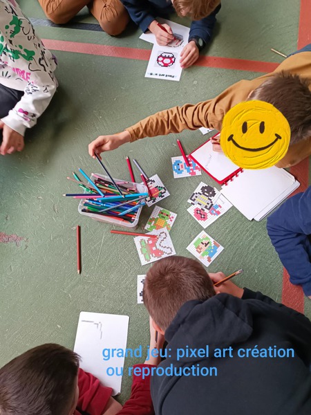 Les enfants ont participé à des jeux extérieurs ( jeu de la forteresse et le jeu des fruits), à un atelier pixel géant et les shaouanis (6-8 ans) ont commencé à élaborer le contenu de leur boîte sophrologie. ( fleur des émotions, petit bâton de pluie et petits mots de confiance.)